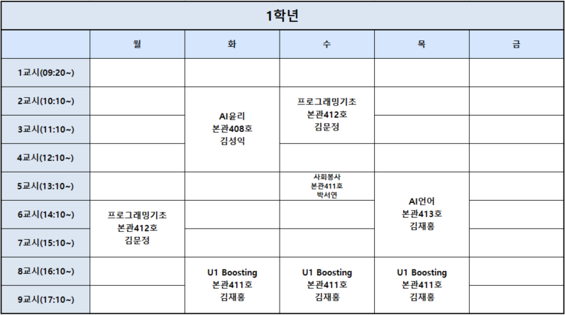 2026-1학기 1학년 시간표