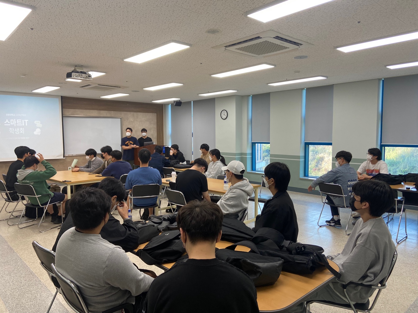 ■ 2022-2학기 스마트IT 학생 지원 프로그램(ITSAP : IT Student Assist Program) 행사 안내 - 날짜 : 2022.11.29(화) 14:00 ~ 15:00 - 참석 : 학생 - 학회장, 학년대표(4명), 부학회장, 총무, 차기 학회장, 관련 학생들 교수 - 김재홍, 김문정, 김성익 - 내용 : IT 커리어 관리 프로세스, 학생들 의견 청취, 교육 과정 개선 활동 및 재학생 관리, 2023-1학기 학과 운영 방안, 안전 교육 특히 종강 모임에 대한 안전 교육 등 ■ 2022.11.29 ITSAP 행사 결과 - 20 여명의 재학생들과 학과 전임 교수가 참석하여 이번 학기 학과 운영 및 강의에 대한 의견 교환 - 현 학생회 임원 인사 - 차기 학과 학회장 소개 - 이번 학기 학과 행사 시상식 등