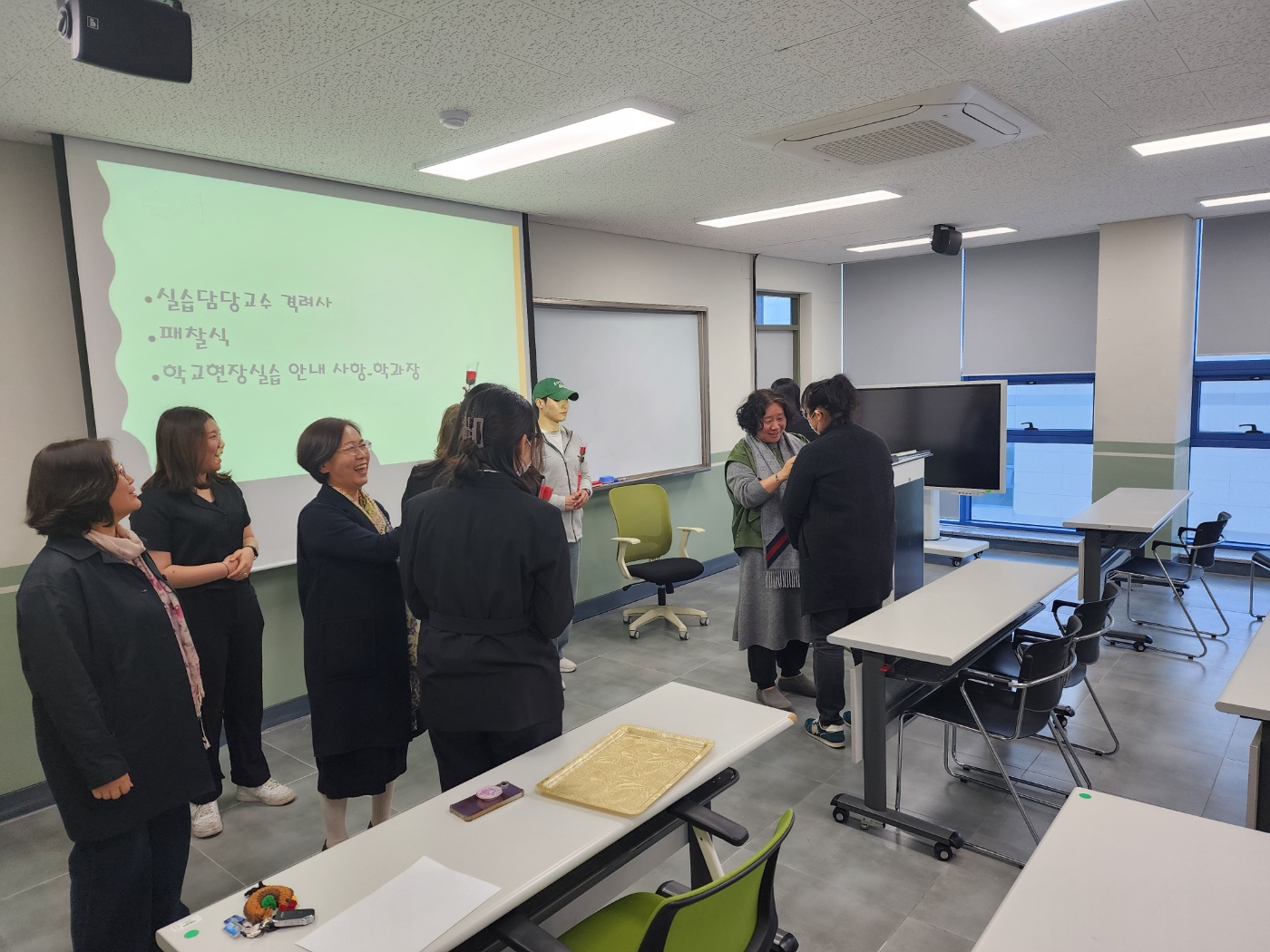 사전 오리엔테이션에서는 패찰식을 진행하 모든 실습생들의 가슴에 교수님이 이름표를 달아드렸습니다.