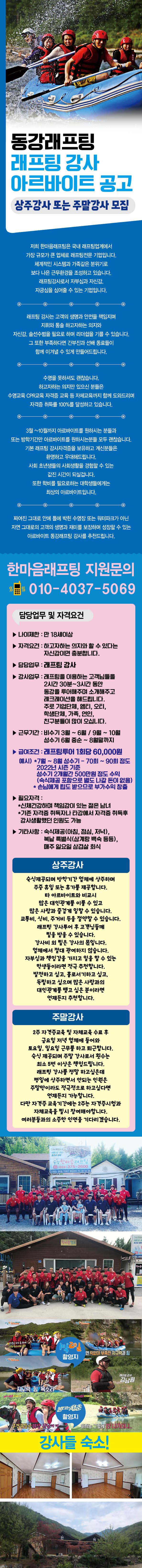 동강 한마음래프팅 직업 아르바이트 공고